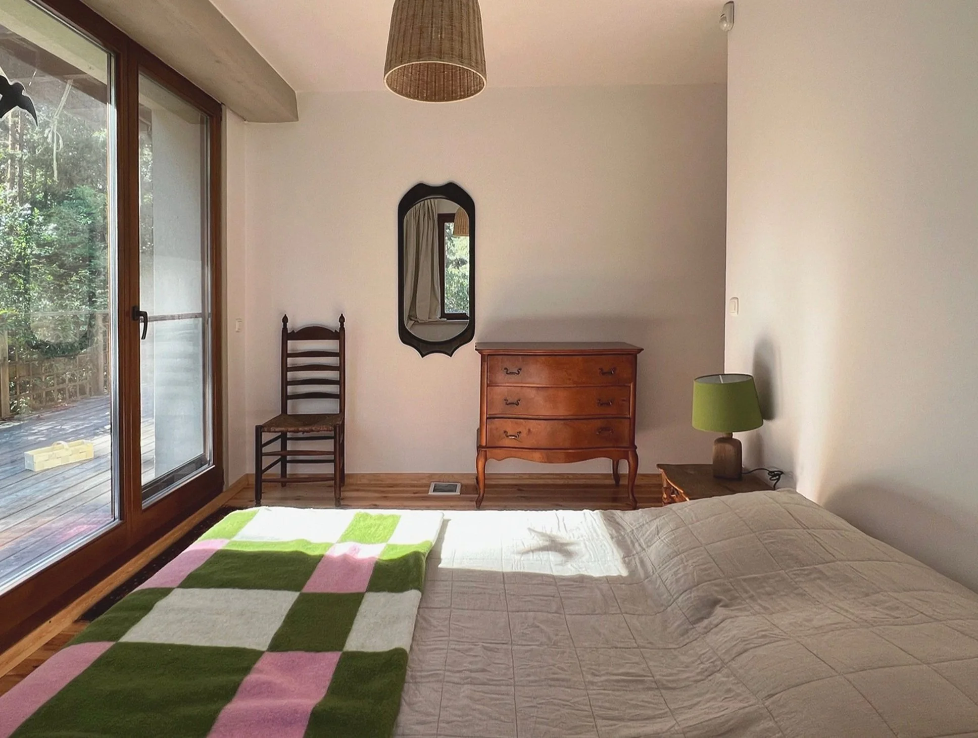 The house has wifi, towels, bedding, washing machine, dishwasher, oven, a fenced garden, sun loungers, beaches and forest – and dogs are welcome.
